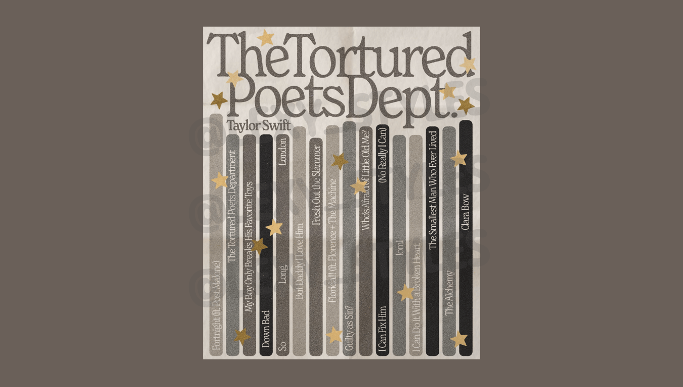 Taylor Swift "The Tortued Poets Department" tracklist Digital Download Poster!